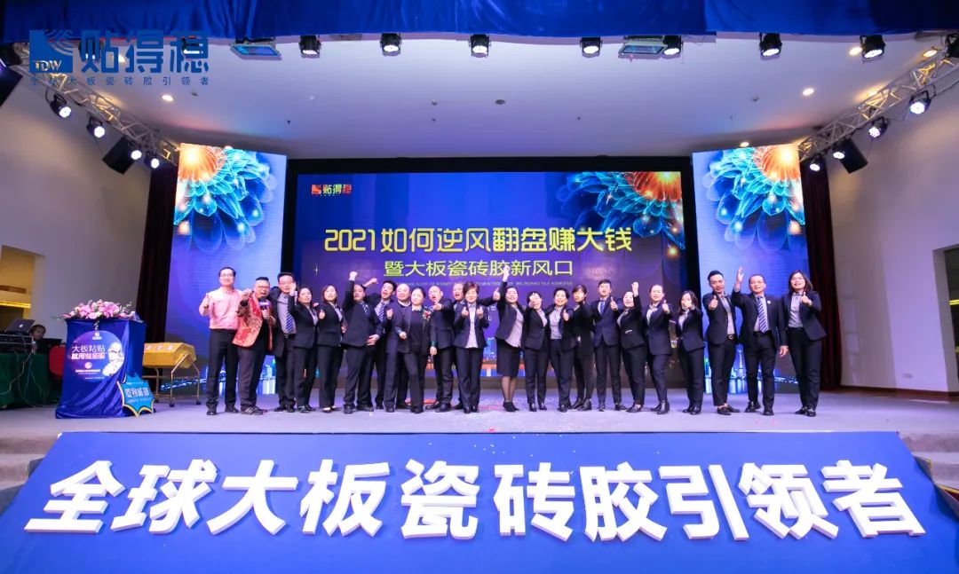 12月21日,贴得稳2021如何逆风翻盘赚大钱暨大板瓷砖胶新风口在佛山祈福仙湖酒店隆重举行,在全国各地经销商、合作伙伴、协会领导、媒体代表的见证下,贴得稳正式迎来了新的编章!