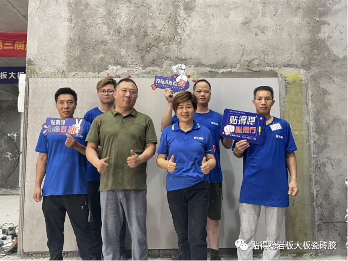 最终三片岩板成功铺贴,在老师的赞扬下,学员们都露出了满意的笑容。