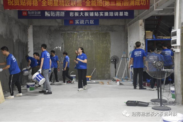 在学员们的实际操作中,每位学员都干劲十足包括从涂抹墙固,打瓷砖胶,岩板处理,学员们都谨遵教导,争取每一个步骤都做的标准规范,符合要求。