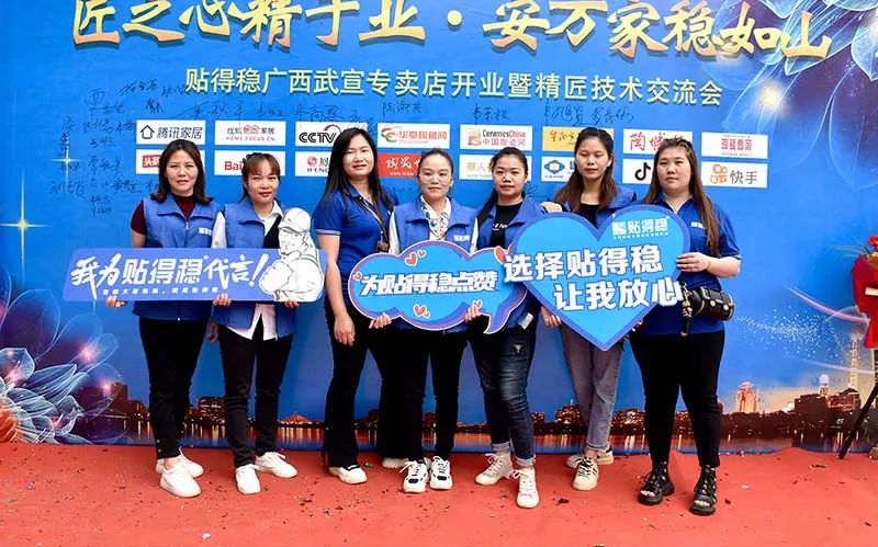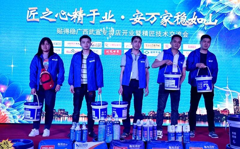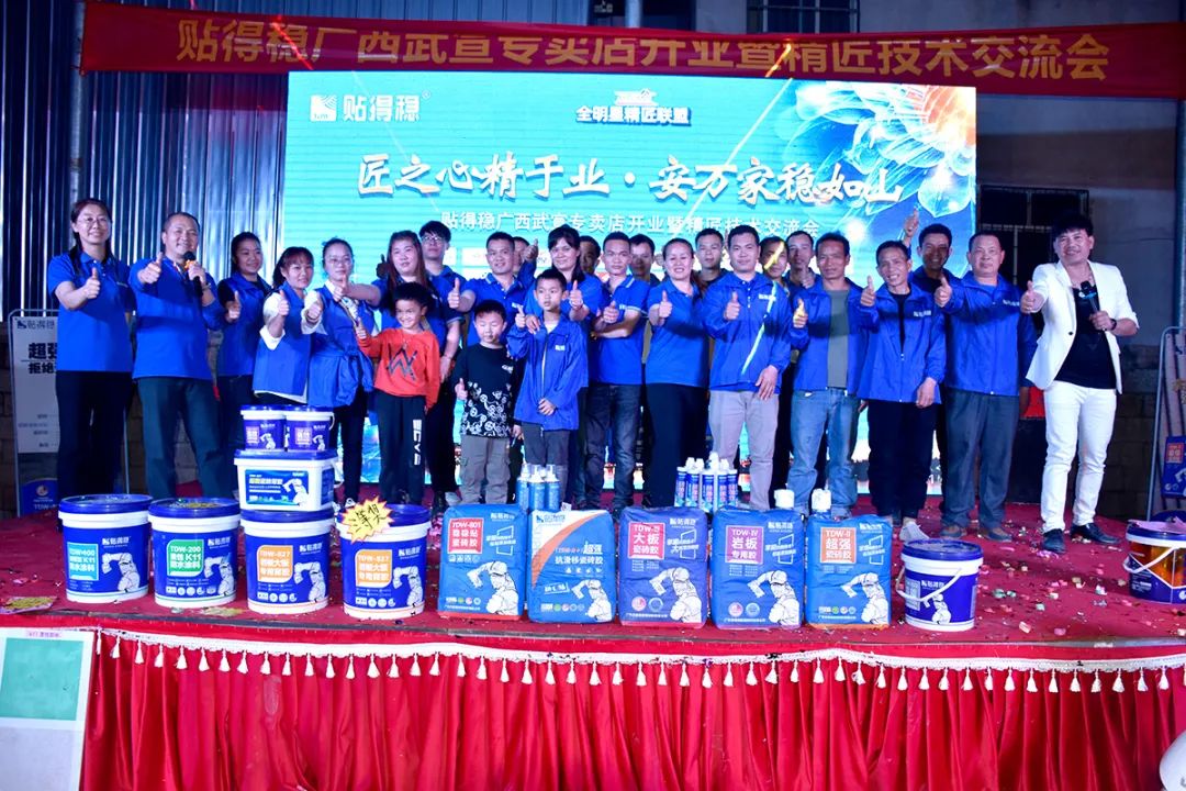 阳春三月,万物复苏,一切美好都如约而至。近日,贴得稳广西武宣专卖店开业暨精匠技术交流会顺利举行。贴得稳团队与当地工长师傅五百余人欢聚一堂,互相交流,收获满满。