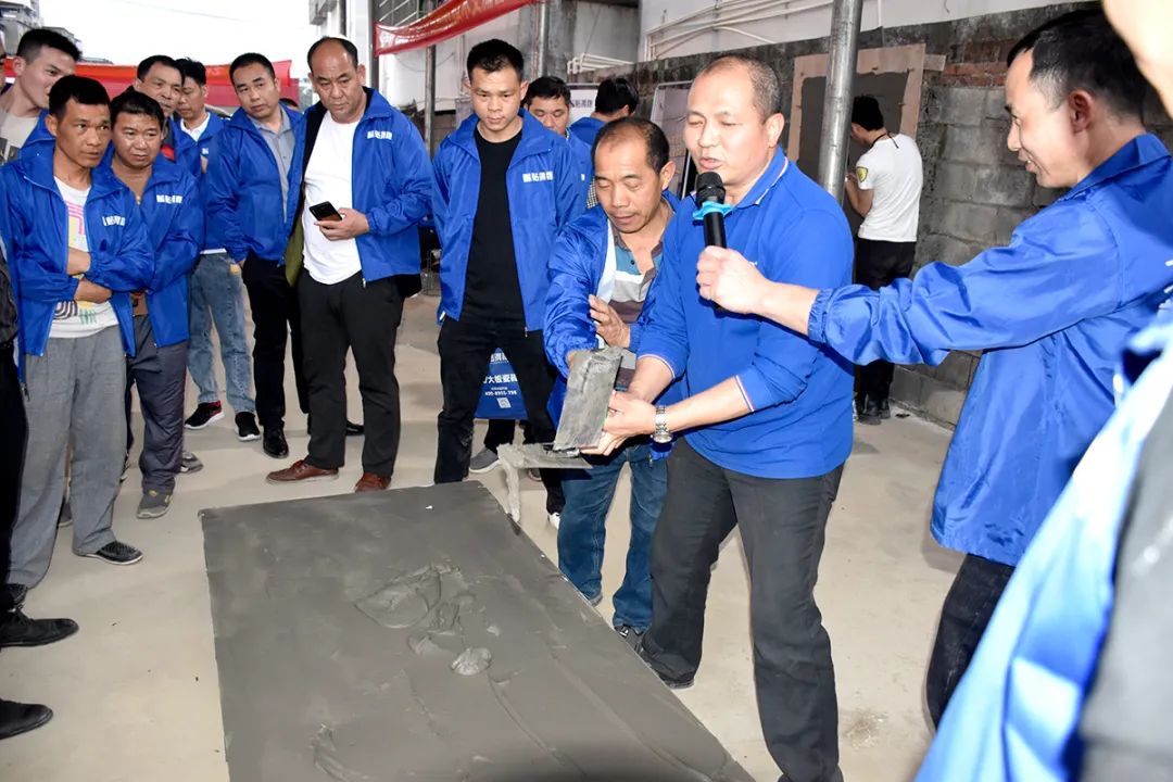 贴得稳技术顾问文超系统性讲解了辅料产品的运用技巧,同时现场演示了岩板铺贴的工艺流程,工匠师傅们踊跃参与互动,亲自验证了贴得稳产品优越性能,对贴得稳表达了高度的认可与赞扬。