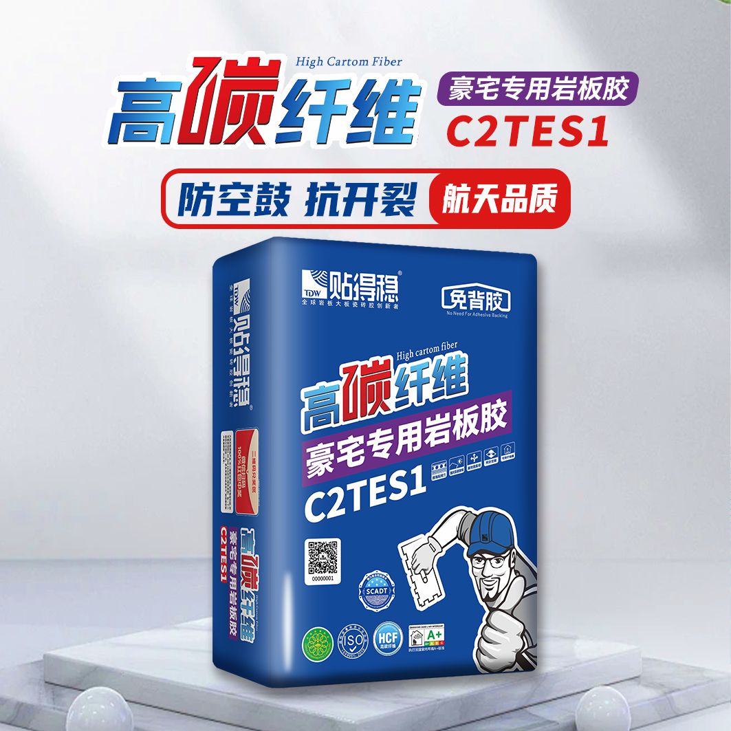 贴得稳岩板大板瓷砖胶新品高碳纤维系列豪宅专用岩板胶采用高碳纤维材料锚固技术,粘结力达到行业高端的C2TES1级别。在如今大尺寸瓷砖流行的趋势下,像900x1800mm甚至更大规格的岩板、大板瓷砖,普通瓷砖胶难以满足粘贴需求,而贴得稳岩板大板瓷砖胶却能轻松应对,将瓷砖牢牢固定在基面上,从根源上杜绝空鼓、脱落隐患。许多施工师傅反馈,这款瓷砖胶胶体细腻,延展性好,刮涂顺畅,而且快干特性大大缩短了施工周期,提升了工作效率。