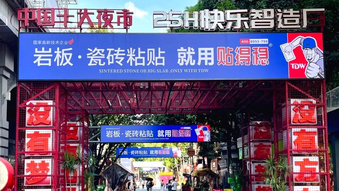 再显行业领军者硬实力,贴得稳岩板大板瓷砖胶广告全城轰炸,引领陶博会新风向!
