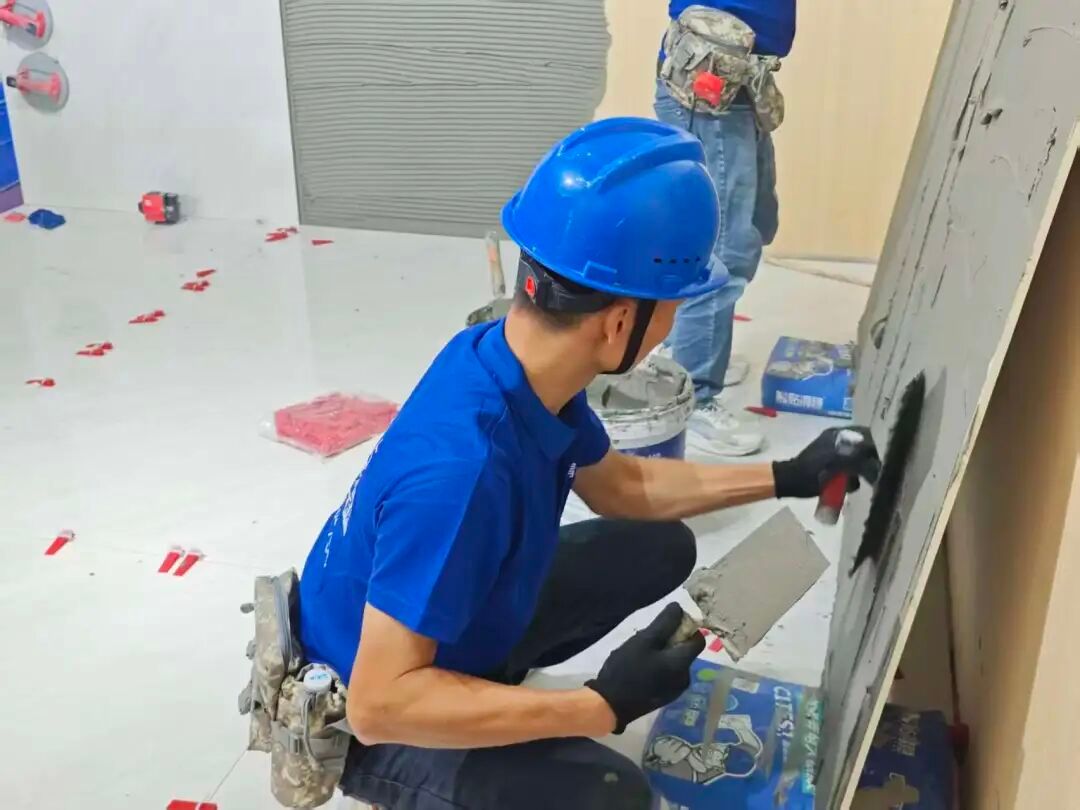 他们以毫米级精度把控每一步操作,将深耕行业多年的工艺沉淀转化为赛事标准;全国技能大赛镶贴冠军钟清闲更是亲临赋能,以国家级技艺标杆为赛事注入专业高度,最终成功搭建出符合 “好房子” 标准的完整铺贴样板——