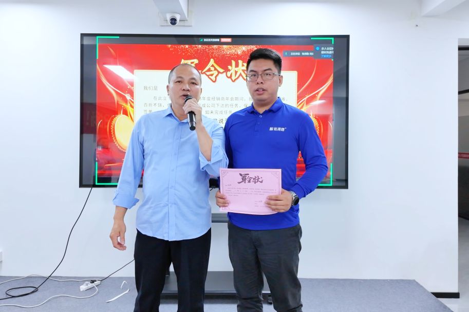 为将战略决心转化为必胜成果,启动会设置了极具仪式感的 “军令状”签署环节。各大战区及核心部门负责人逐一上台,在全体同仁的见证下,郑重签署并提交了军令状。